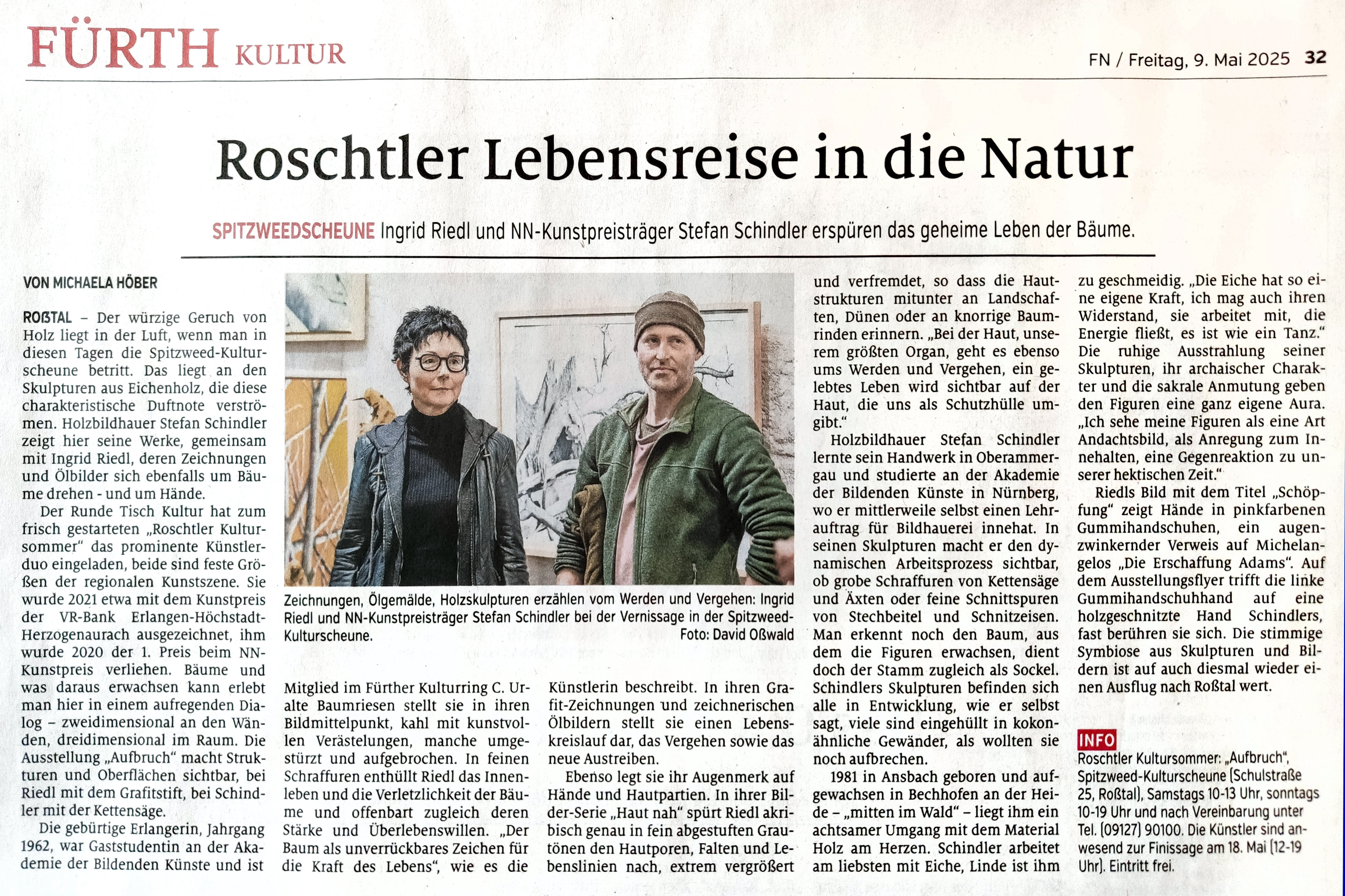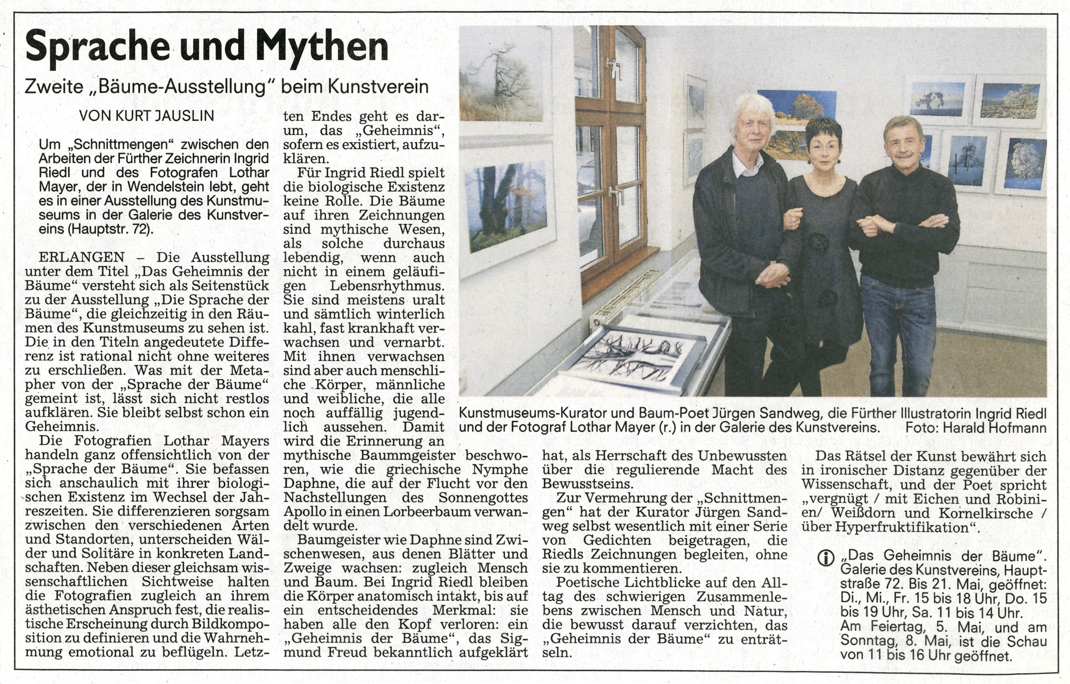 An diese Zeilen und an zahllose andere Geschichten, die seit der mythischen Weltesche Yggdrasil rund um das Wunderwesen Baum gewachsen sind, wird erinnert, wer die Zeichnungen Ingrid Riedls betrachtet. Knorrig stellen sich „die Starke“ und „der Kräftige“ in den Weg. Es sind alte, uralte Einzelgänger wie die „HerzBlutBuche“, die es aufgegeben hat, himmelwärts zu streben, und nun ihre kräftigen Äste den Erdlinien entlang ausbreitet.